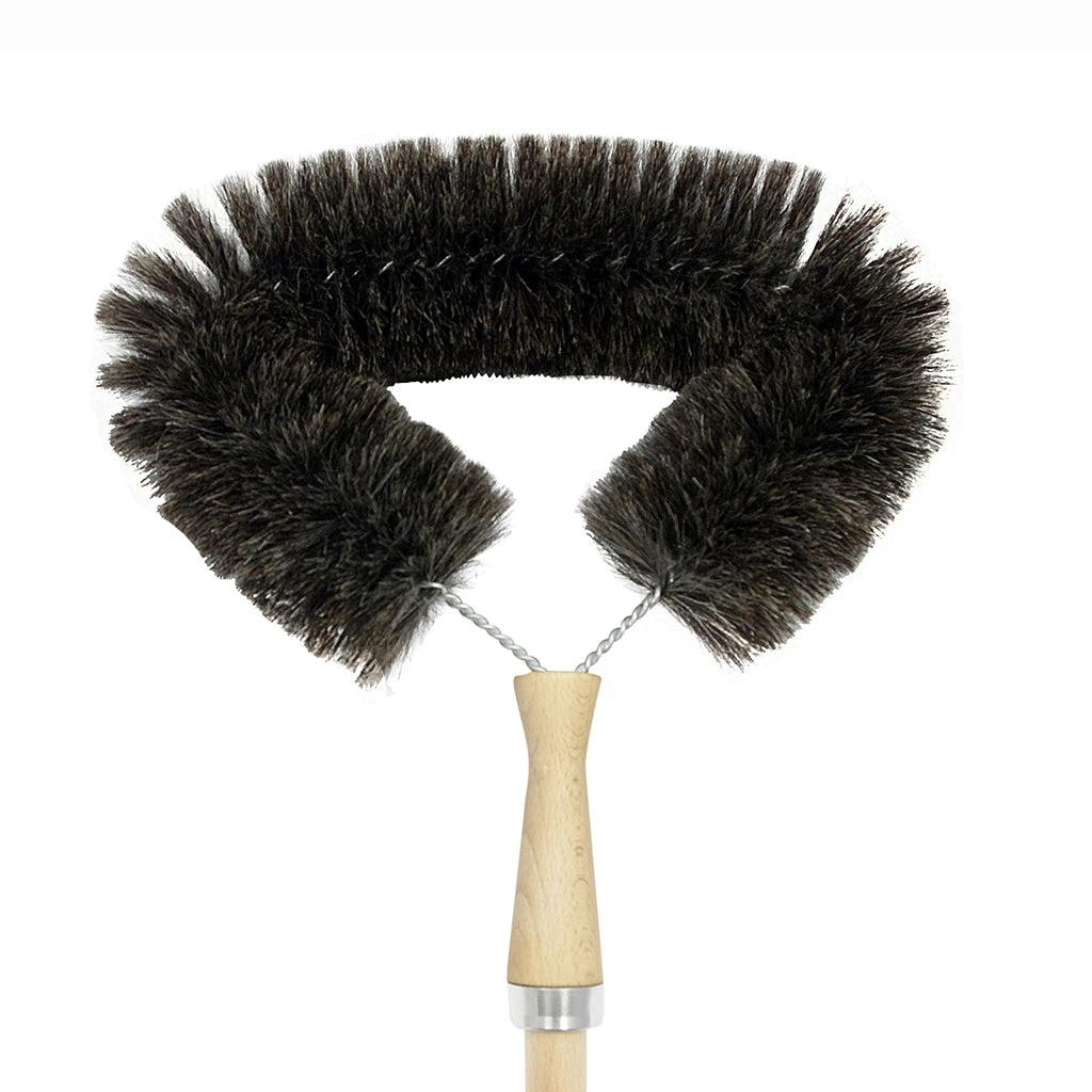 This beautiful triangular ceiling brush is especially designed to dust off ceilings and access the corners. It is a must-have when it comes to getting rid of spider webs in your ceiling corners! Equipped with an aluminium socket, it fits perfectly with a screw on handle, not provided. The brush is made of natural raw materials : grey goat hair and beechwood.