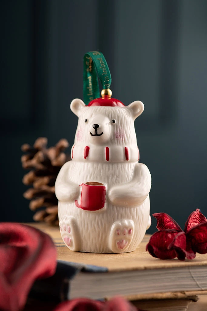 This polar bear is looking very cosy as he’s wrapped up warm with a hat, matching scarf and even a mug of hot chocolate.