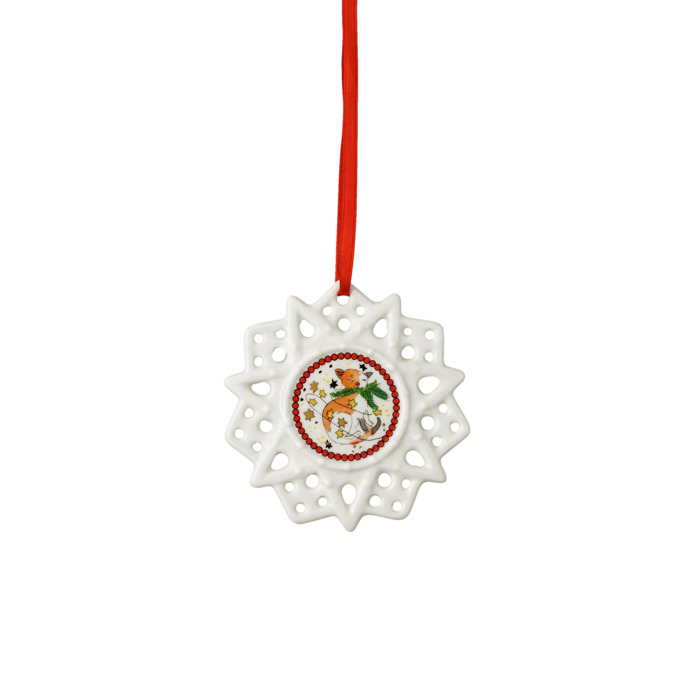 This gorgeous little star is made out of high quality porcelain and is adorned with a cute little cat who’s gotten themselves all tangled up in the Christmas lights.