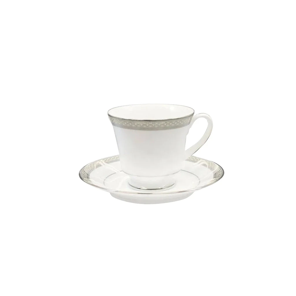 Noritake Legacy Splendor dinnerware is a masterpiece of white porcelain adorned with delicately embossed platinum chains and meticulously handcrafted platinum accents.