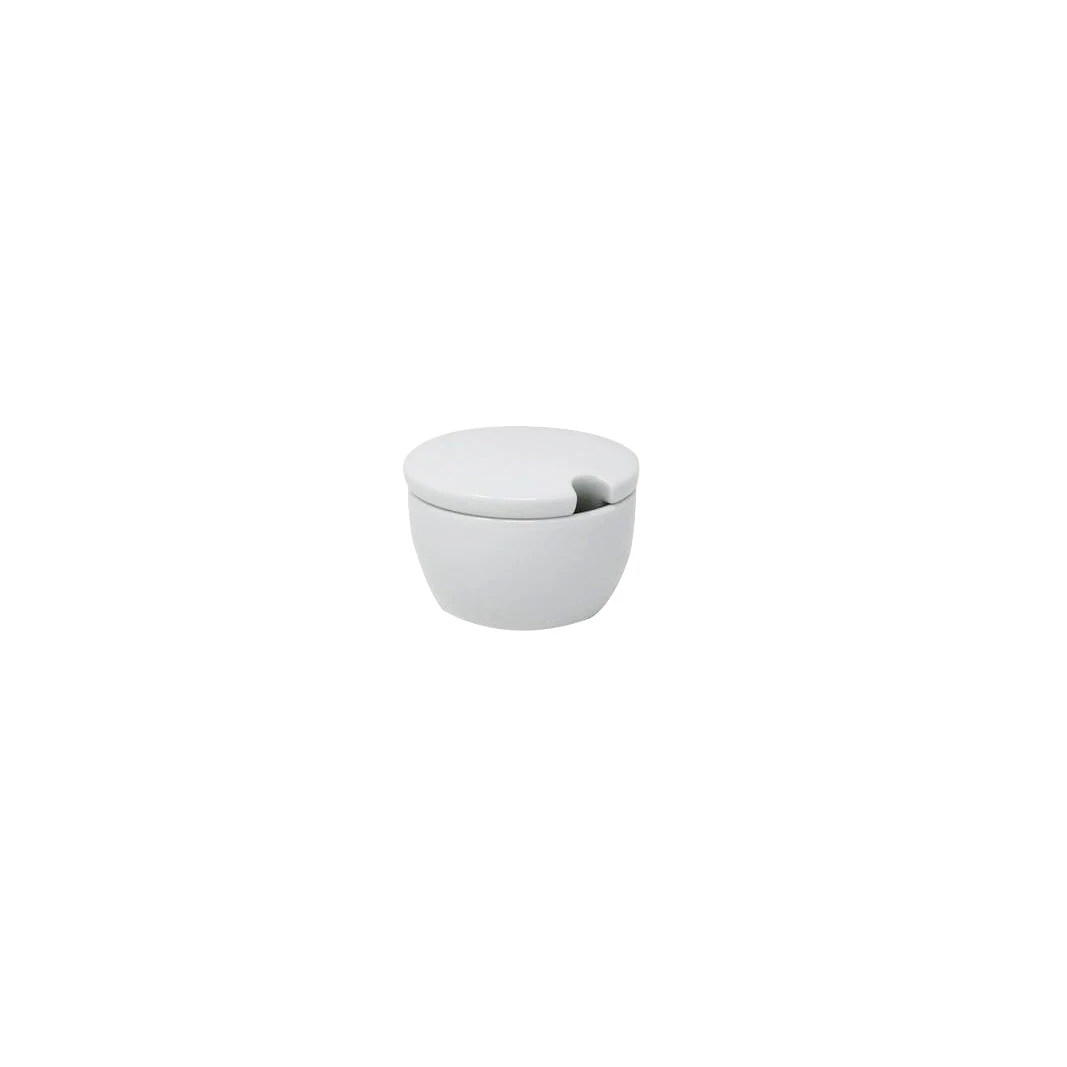 A small condiment pot with a gap to hold a teaspoon. Perfect for sauces, dressings or even sugar. Made of high-quality white porcelain to fit seamlessly in with most tableware sets. Designed for everyday use.
