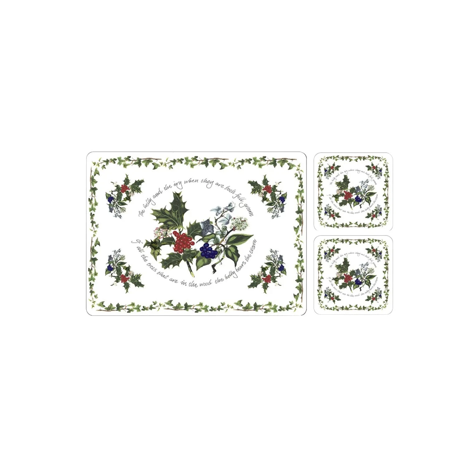 Size:Â Placemat 30.5 x 23cm. Coaster 10.5 cm
