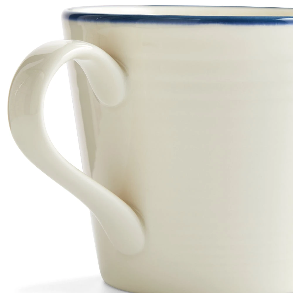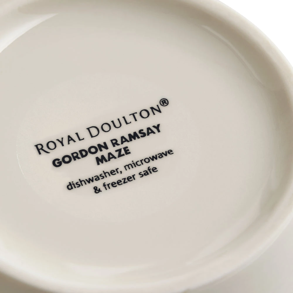 Sip your morning coffee or tea in a Gordon Ramsay Maze Denim Line Mug. A set of four, each one holds a generous amount of caffeine. Crafted from white stoneware featuring the trademark Maze circular design, they come with a contrasting blue denim glaze line around the rim. Mix and match with other Maze collection mugs, coming in various colours such as Denim Blue.