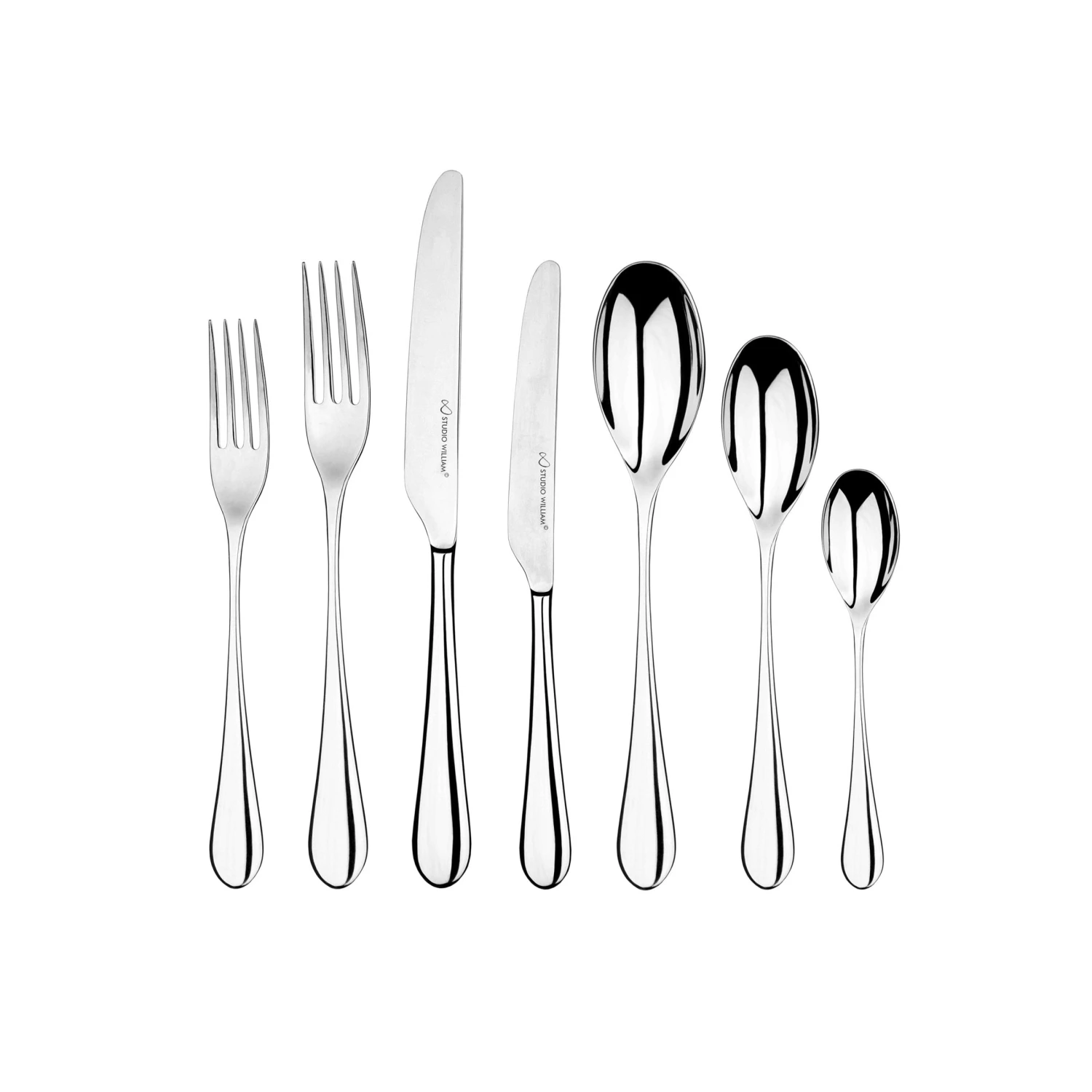 Sophisticated and timeless, the award winning Mulberry pattern design is perfect for both contemporary and traditional table settings. Mulberry Mirror 7 Piece Place setting consists of a Table Knife, Table Fork, Soup Spoon, Side Knife, Side Fork, Dessert Spoon and a English Teaspoon.