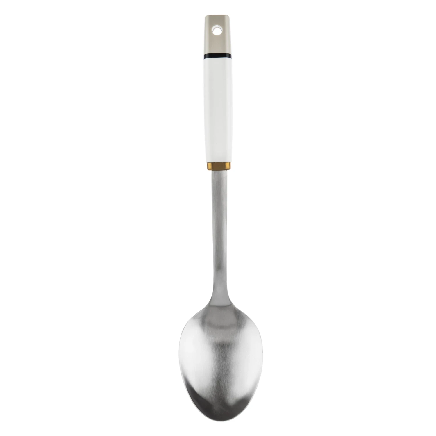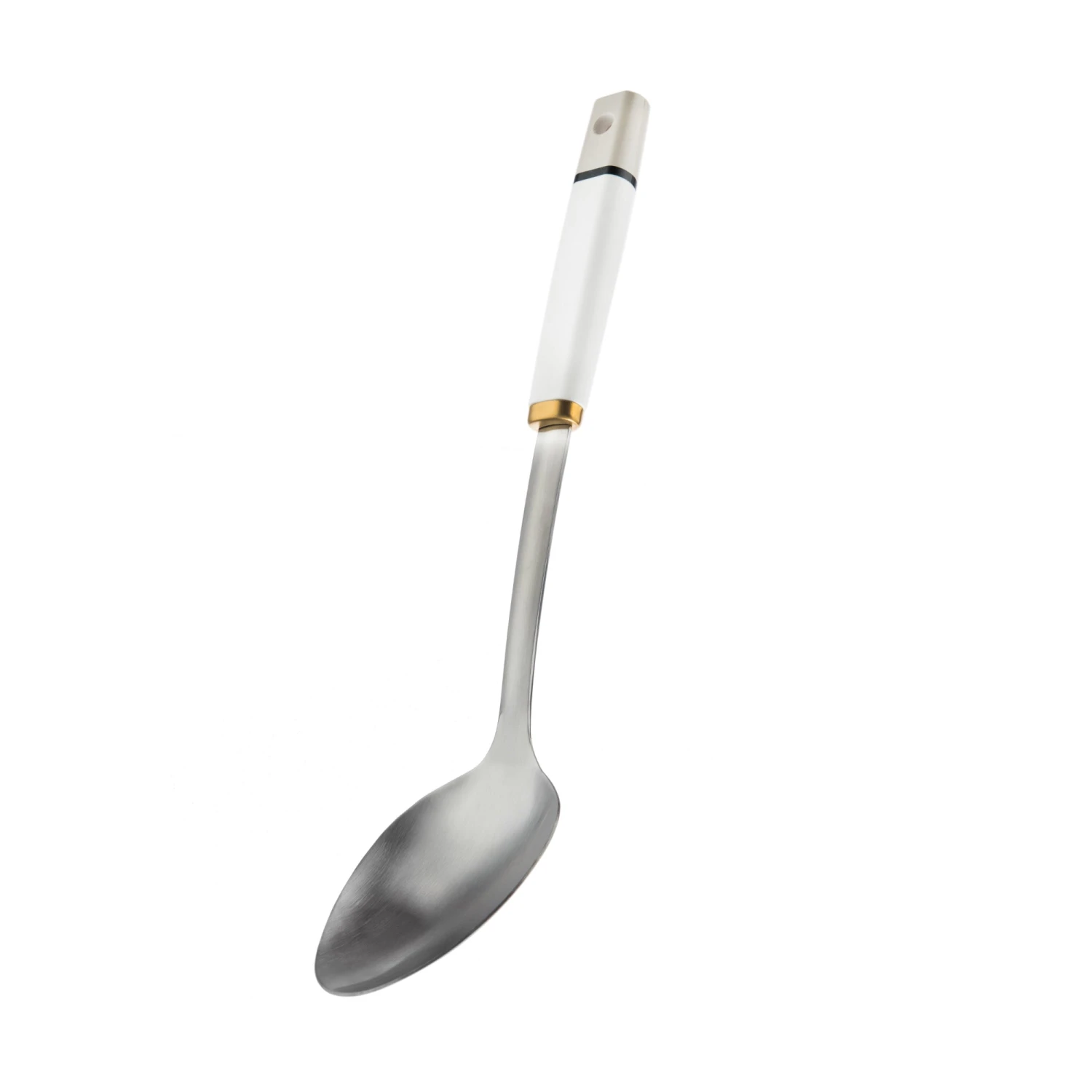 Made of stainless steel with a ABS handle and brass effect collar.Â