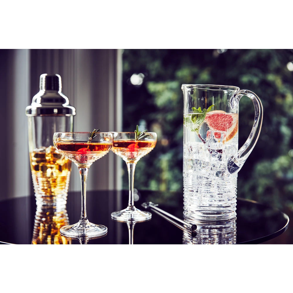 An array of tropical fruits and juices complement rum’s versatile reputation as a mixing spirit and the Mixology Circon Pitcher is ideal for you to serve iconic cocktails. Rum Punch, Mojitos, Hurricanes and more become instantly more stylish in this eye-catching Pitcher. The straight profile, elegantly curved handle and distinctive linear pattern, echoing sugar cane and banded distilling barrels make this a versatile barware piece for your home entertaining. Crafted in beautiful crystal, the Mixology Circon Pitcher 41 OZ is presented in a signature grey Waterford box with decorative sleeve for you to give and use often to bring friends together and enjoy the feeling of fun and relaxation.