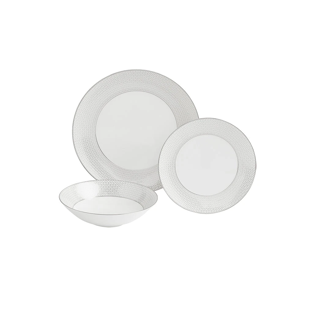 Set includes four dinner plates (28cm), four side plates (20cm) and four soup/cereal bowls (20cm).